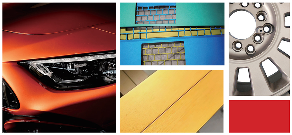 通過有機/無機包覆,在鋁片表面形成一層均勻致密的致色層,使得鋁顏料具有高金屬質(zhì)感和遮蓋效果、耐候性、耐酸堿等優(yōu)異性能,具有豐富多彩的顏色效果。有機彩鋁是有機色粉和銀漿接枝,采用高分子保護,顏色豐富穩(wěn)定,耐溫良好。無機彩鋁是水性銀漿包覆氧化鐵,類似珠光效果同時具備高金屬質(zhì)感,耐高溫,耐酸堿。廣泛應用于粉末涂料、汽車涂料、油墨、3C、UV等行業(yè)。